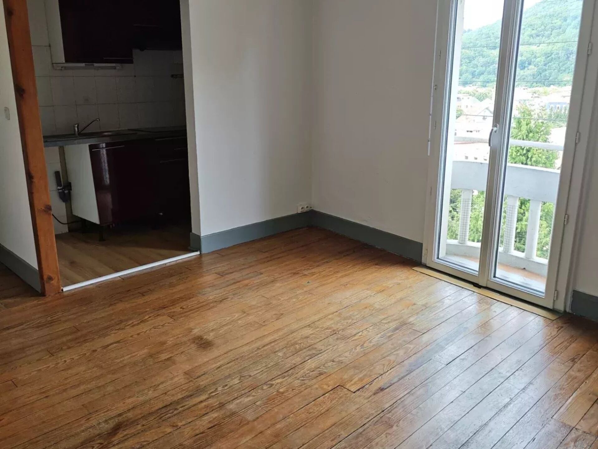 A louer sur le secteur de Foix, proche du centre ville, appartement T2 au 2e étage d'un immeuble composé de 9 appartements, se composant d'une chambre indépendante, salle d'eau, toilettes, séjour et cuisine semi aménagée.
