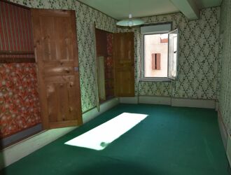 Stone construction: semi-detached on two sides, single wooden glazing with wooden shutters throughout, limited insulation under the second-floor flooring, and electrical renovation required.