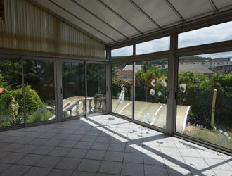 En rez-de-chaussée, elle est composée d'une cuisine, d'une pièce à vivre d'environ 36 m² avec cheminée ouverte, une salle à manger, une belle véranda entièrement vitrée d'environ 23 m²,toilette séparé.